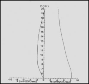 Now that we understand the normal values and the assessment of the airway responses to stimuli, let’s look at what some of the abnormal values can tell us about our patient’s airways. To this end, by looking at both the resistance/reactance curves and data the clinician can begin to understand the nature of any airways dysfunction.