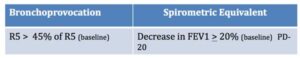 Table 4: Spirometric equivalent for bronchial challenge testing as measured by IOS10,11,12