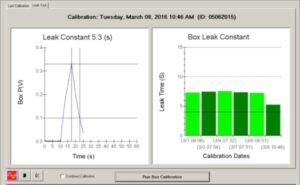 This patient only had spirometry testing, so the dirty door seal didn’t affect his testing. Obviously, this door seal needed to be cleaned, but I decided to re-calibrate the plethysmograph first to examine the affect of the dirty seal. As shown below in figure 2, there was a marked increase in the body box leak factor.