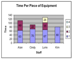 I called four other testing facilities to find out what their PM and BioQC programs looked like, then went to the “Gemba” to observe. Gemba is the LEAN term referring to the location of the work. I actually sat with a stopwatch and wrote down every detail and time period associated with the task. I discovered some variations in the process. All staff did not utilize the same order for testing. Some staff used the flanged mouthpiece and others did not. Due to the variations I also observed that the time required to complete the task differed amongst staff members. (See table 1)