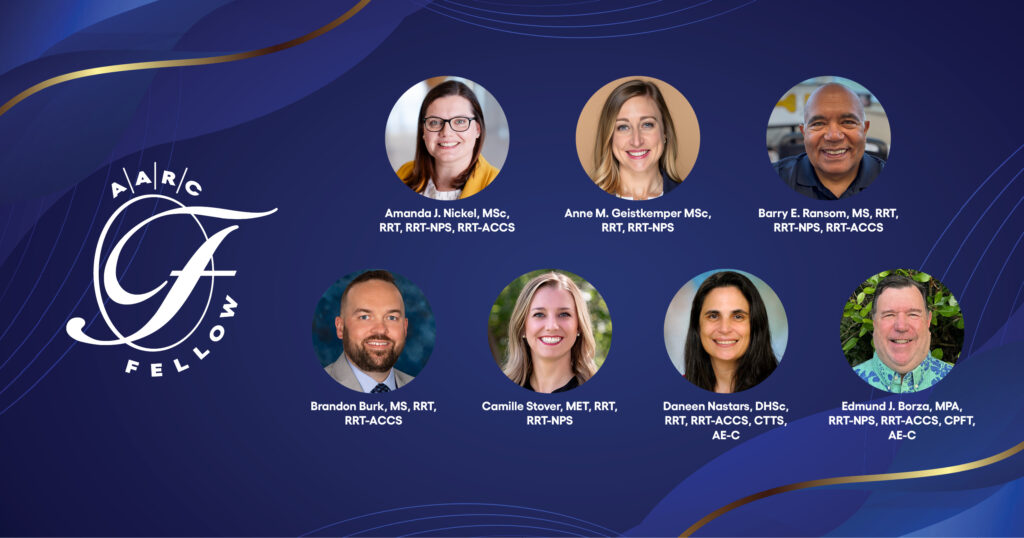 Congratulations to the 32 individuals selected into the 2025 AARC Fellows class. This recognition honors outstanding AARC members who have demonstrated exceptional achievement in respiratory care through educational achievement, validation of competency, advanced credentials, research initiatives, publications, and clinical initiatives. Join us in celebrating these exceptional professionals who exemplify the highest standards in the field. Learn more about the AARC Fellows and how the individuals are selected here.